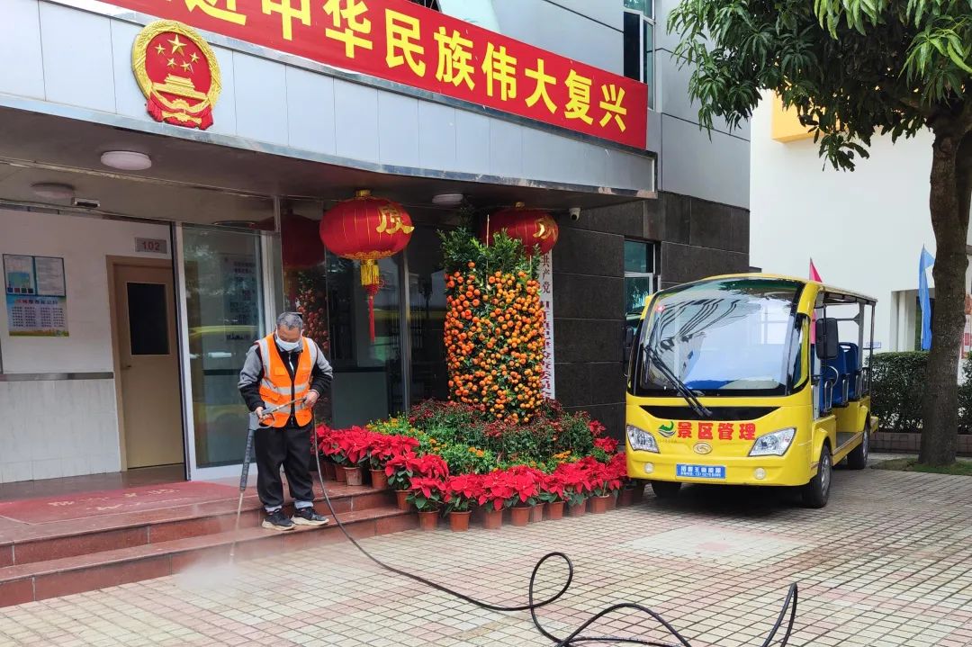 進(jìn)駐首周,大橫琴城資海島服務(wù)團(tuán)隊(duì)便迎來(lái)了春節(jié)長(zhǎng)假的旺季保障任務(wù)。在時(shí)間緊、任務(wù)重的情況下,海島服務(wù)團(tuán)隊(duì)全體出動(dòng),積極配合擔(dān)桿鎮(zhèn)開(kāi)展“除舊迎新專(zhuān)項(xiàng)行動(dòng)”,按照“大清掃、大沖洗、大整治”作業(yè)模式,全面沖洗路面的污漬、青苔,清理垃圾、落葉、雜草等,助力營(yíng)造干凈、整潔、有序的海島環(huán)境。