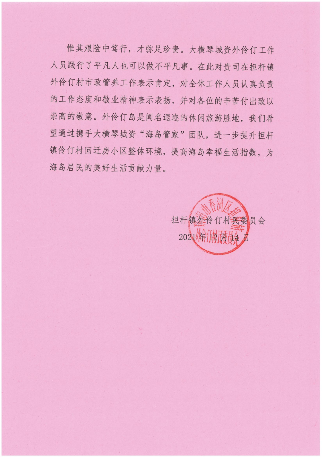 作為珠海最早探索“海島管家”特色服務(wù)的專(zhuān)業(yè)公司之一,大橫琴城資海島服務(wù)團(tuán)隊(duì)于2021年率先進(jìn)駐擔(dān)桿鎮(zhèn),并逐步將服務(wù)版圖擴(kuò)展至桂山島,在鎮(zhèn)政府的統(tǒng)一領(lǐng)導(dǎo)下,為助力美麗海島高質(zhì)量發(fā)展保駕護(hù)航。此次再度進(jìn)駐外伶仃島,既承載了客戶(hù)和居民的信任與期盼,也展現(xiàn)了大橫琴城資持續(xù)深耕海島服務(wù)的決心與信心。