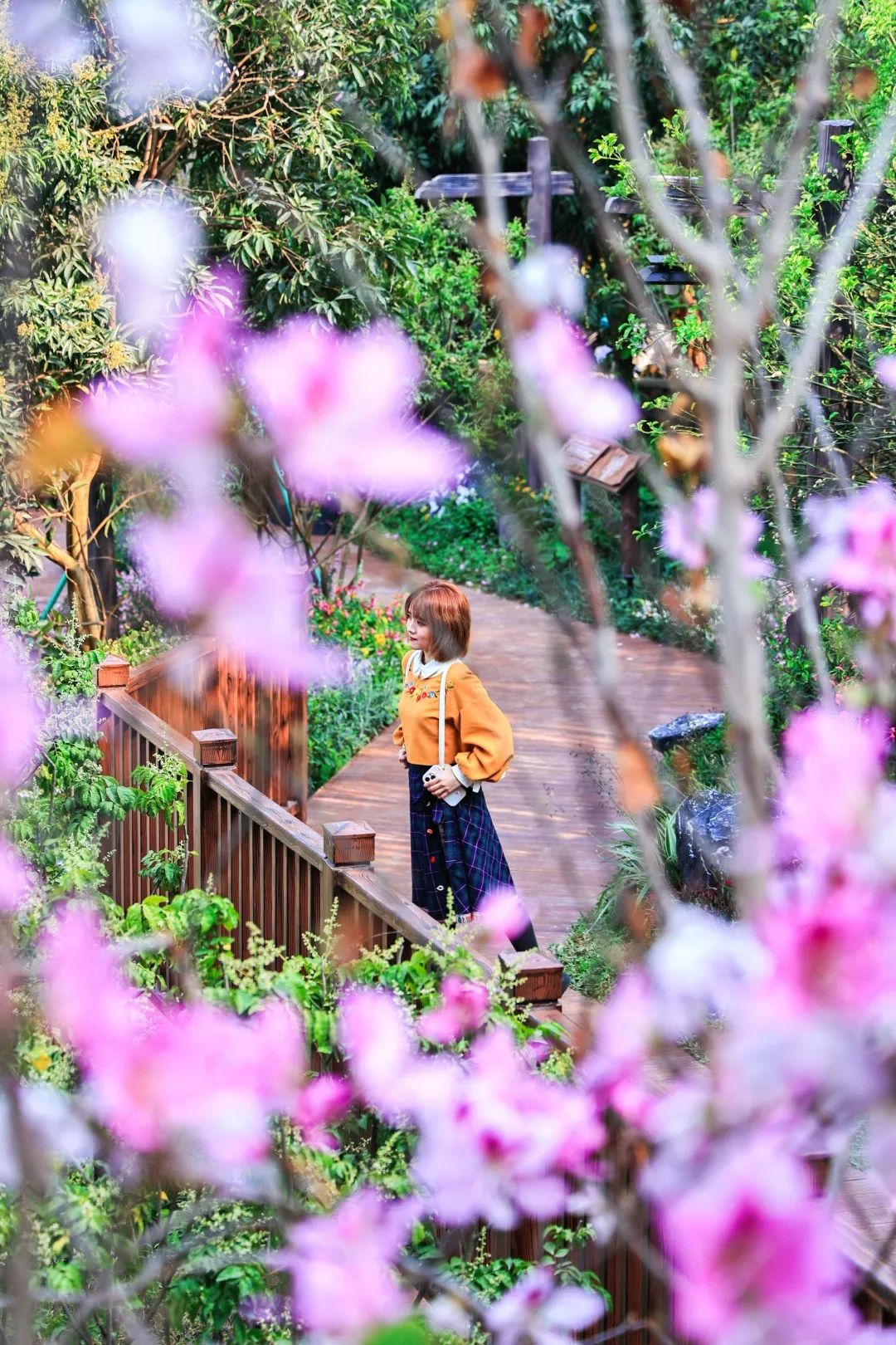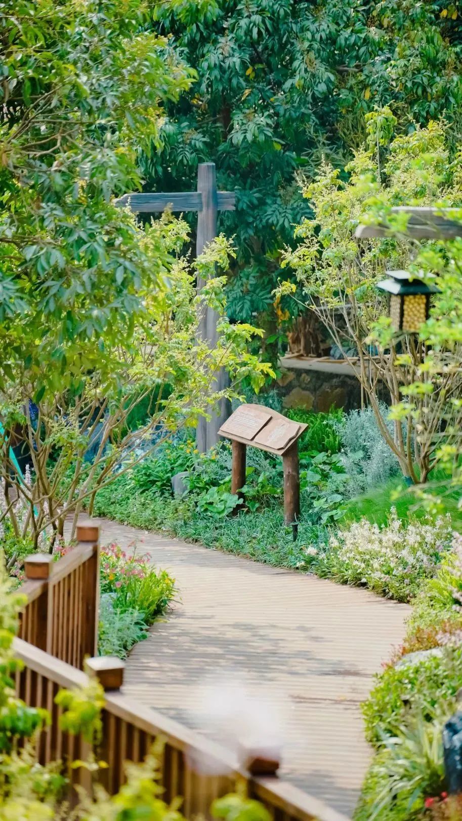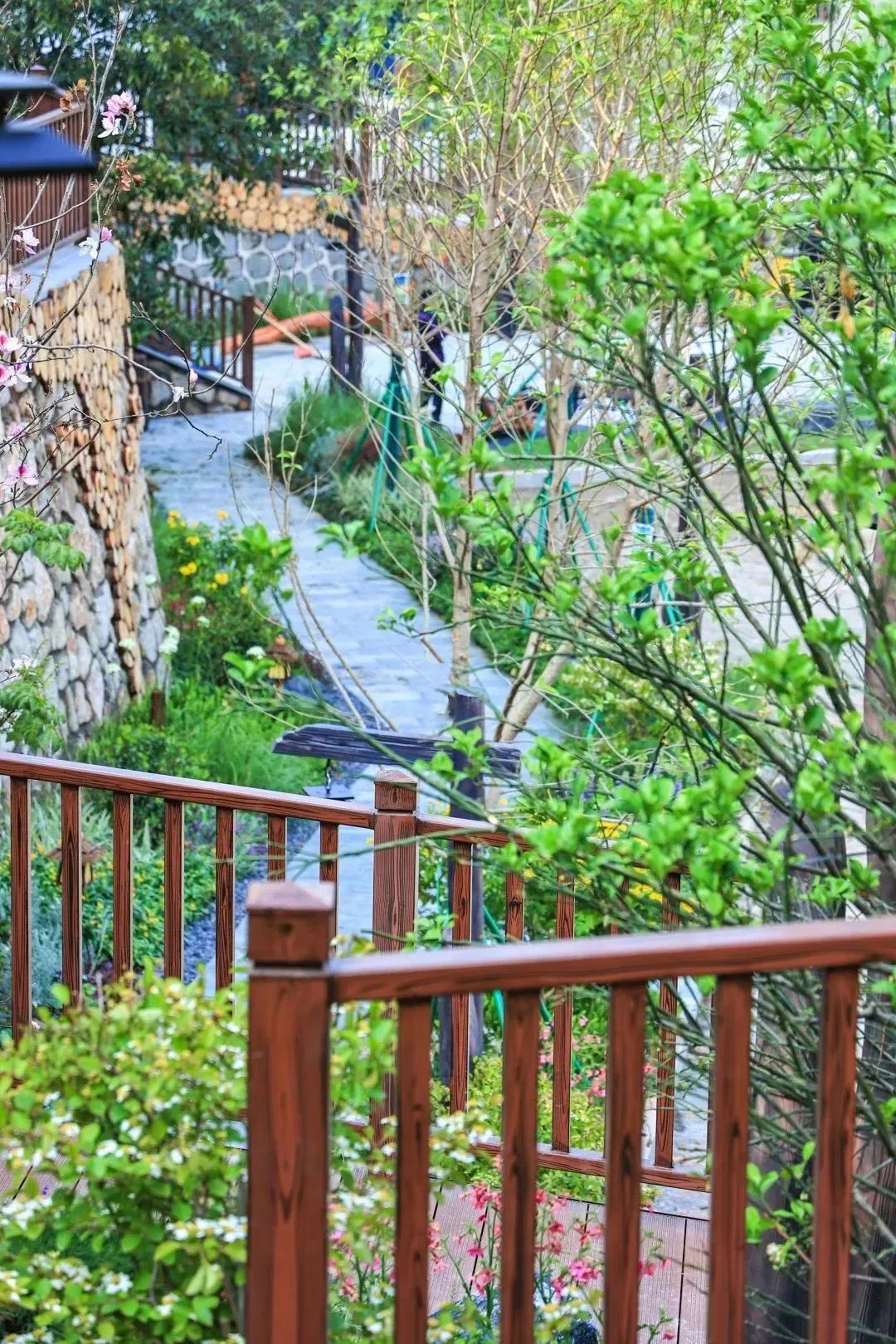 棧道兩旁郁郁蔥蔥的花草樹木