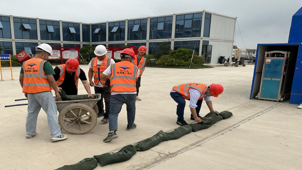 當天下午15時,雨勢逐漸加大,氣象局將臺風預警信號升級為橙色。面對險情,項目部啟動了防臺風橙色應急預案,各小組按預案分工,立即展開應急響應工作,對現(xiàn)場及危險區(qū)域進行警戒;所有人員安全撤離至安置點;重要物資及資料開始轉(zhuǎn)移;對基坑周邊低洼地帶,堆砌沙袋,防止雨水倒灌......