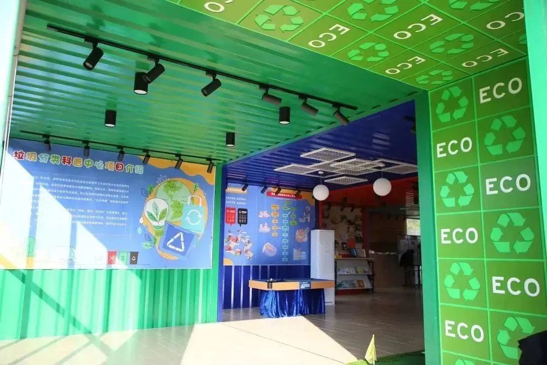 合作區(qū)垃圾分類科普中心室內(nèi)面積達(dá)126㎡,以錯(cuò)位Z型布置的集裝箱,形成內(nèi)向圍合的宣教場(chǎng)地,整體劃分為科普區(qū)、活動(dòng)區(qū)和展覽區(qū)三大功能區(qū),是合作區(qū)以“綠色、循環(huán)、可持續(xù)”為垃圾分類宣導(dǎo)理念,打造的集“活動(dòng)、教育、展學(xué)”三位一體的垃圾分類趣味互動(dòng)學(xué)習(xí)空間。
