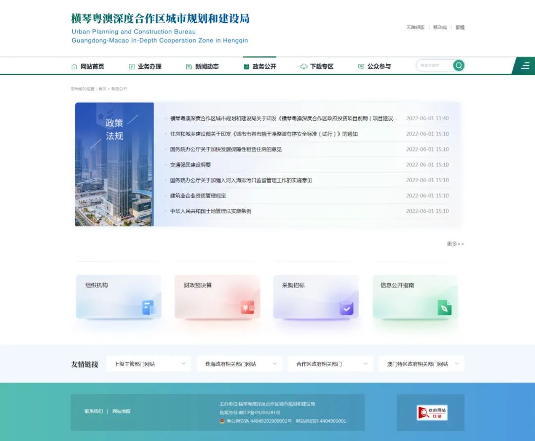 為滿足橫琴粵澳深度合作區(qū)城市規(guī)劃和建設(shè)局政務(wù)服務(wù)及對(duì)外宣傳的需求,進(jìn)一步便利琴澳居民實(shí)現(xiàn)網(wǎng)上辦理事項(xiàng)。近日,由大橫琴科技公司設(shè)計(jì)開發(fā)的合作區(qū)城市規(guī)劃和建設(shè)局官方網(wǎng)站和公眾號(hào)已正式上線并投入使用。網(wǎng)站由合作區(qū)城規(guī)建局指導(dǎo),法規(guī)和科技信息處及綜合事務(wù)處組織協(xié)調(diào),科技公司網(wǎng)站建設(shè)團(tuán)隊(duì)配合,于2022年12月進(jìn)行實(shí)地調(diào)研,全面梳理網(wǎng)站和公眾號(hào)需求,確定網(wǎng)站以“集約化、扁平化”為原則,公眾號(hào)以“欄目策劃和內(nèi)容展現(xiàn)”為主。近半年來在各單位的共同努力下,今年4月順利完成網(wǎng)站和公眾號(hào)上線前的工作。
