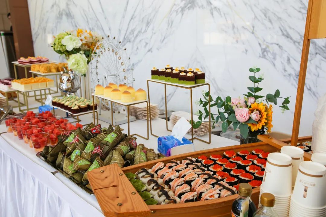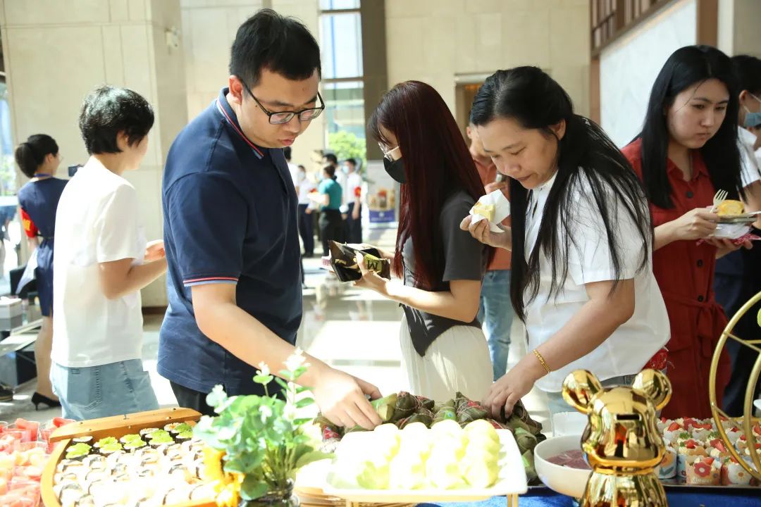 演練結(jié)束后,參與本次演練的業(yè)主們聚集大堂。大橫琴城資服務(wù)團隊獻上早已準備好的粽子、雪糕、壽司、糕點等美味茶歇,為業(yè)主們送去節(jié)日祝福和問候。