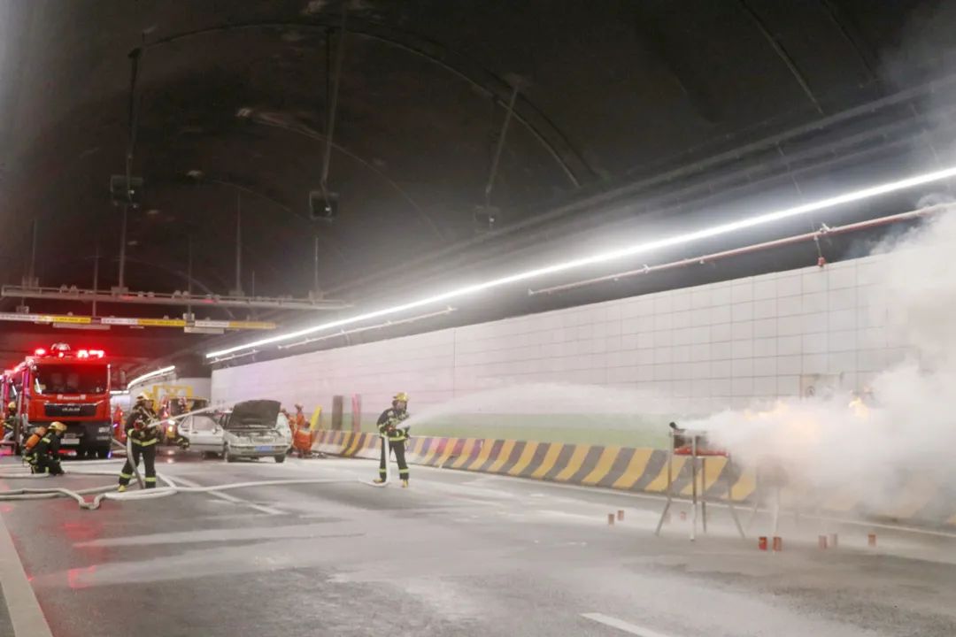 守護安全,分秒必爭。隧道運行環(huán)境錯綜復雜,推動“人治”向“智治”轉(zhuǎn)變尤為重要。本次演練增設(shè)了消防噴淋系統(tǒng)演練環(huán)節(jié),真實呈現(xiàn)系統(tǒng)自動滅火過程。隧道火焰探測器感應(yīng)到火災后自主發(fā)出告警信息,啟動噴淋系統(tǒng)滅火,做到安全、迅速、及時。