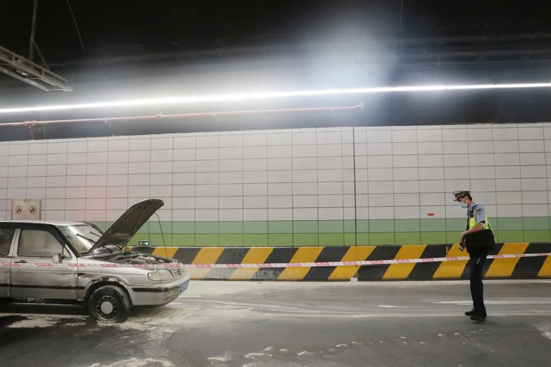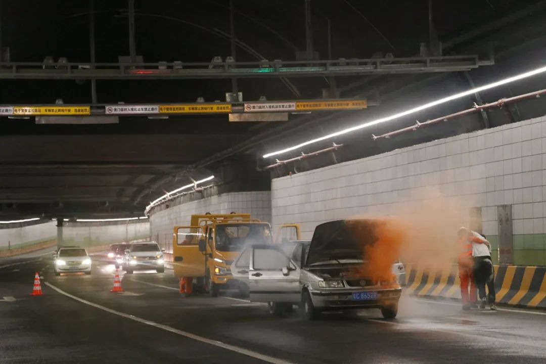 在發(fā)現(xiàn)車輛碰撞事故后,迅速在隧道口進行圍蔽和疏導;