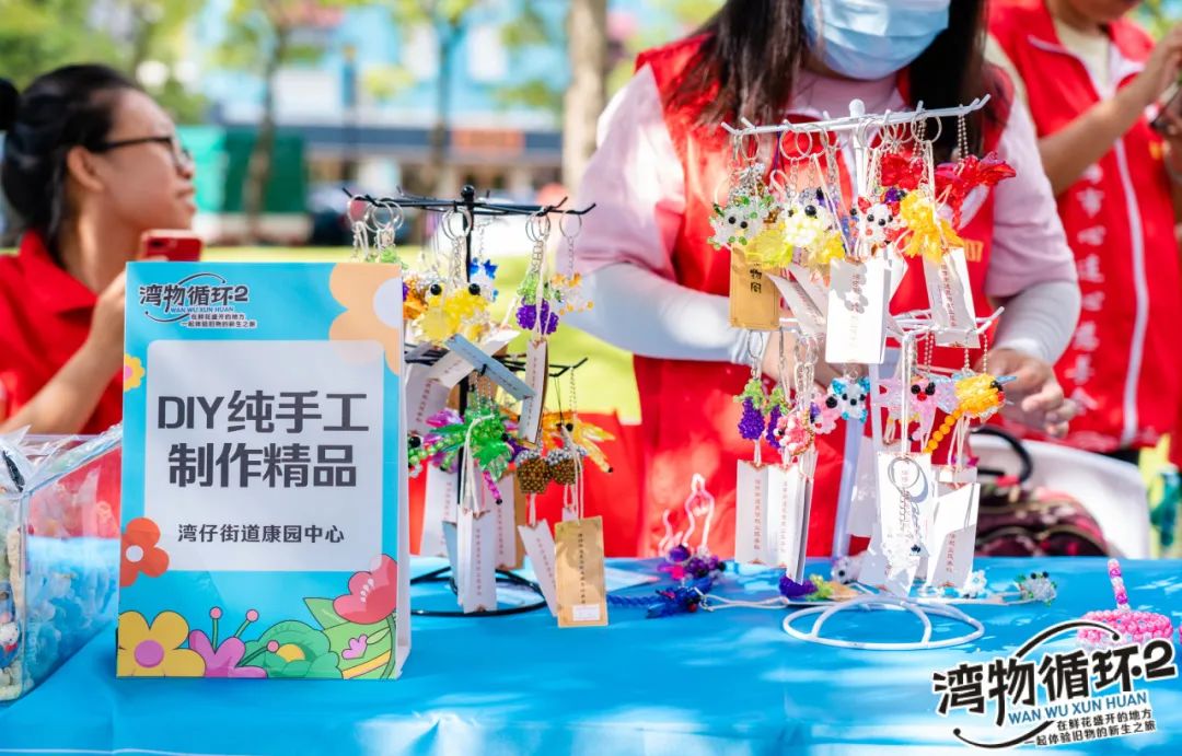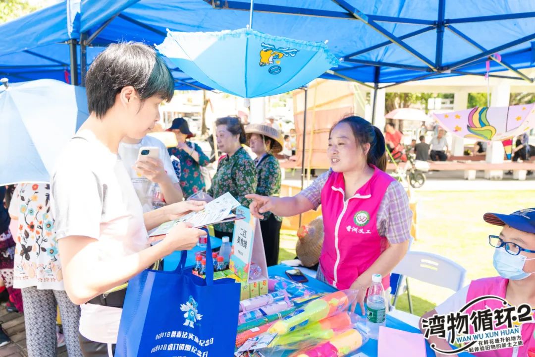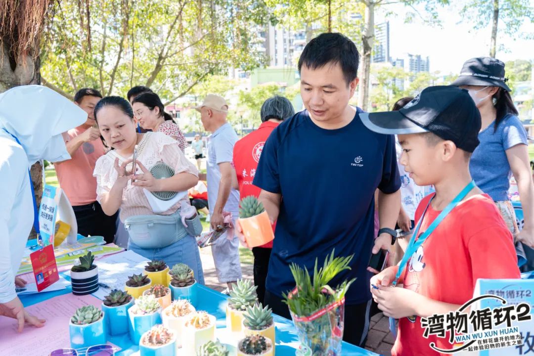 表演結(jié)束后環(huán)保集市正式開攤,來自珠海市城管局、香洲區(qū)人大灣仔工委、灣仔社區(qū)居委會、桂園社區(qū)居委會、作物社區(qū)居委會、富興社區(qū)居委會及各公益機構(gòu)的20個攤位熱鬧非凡。