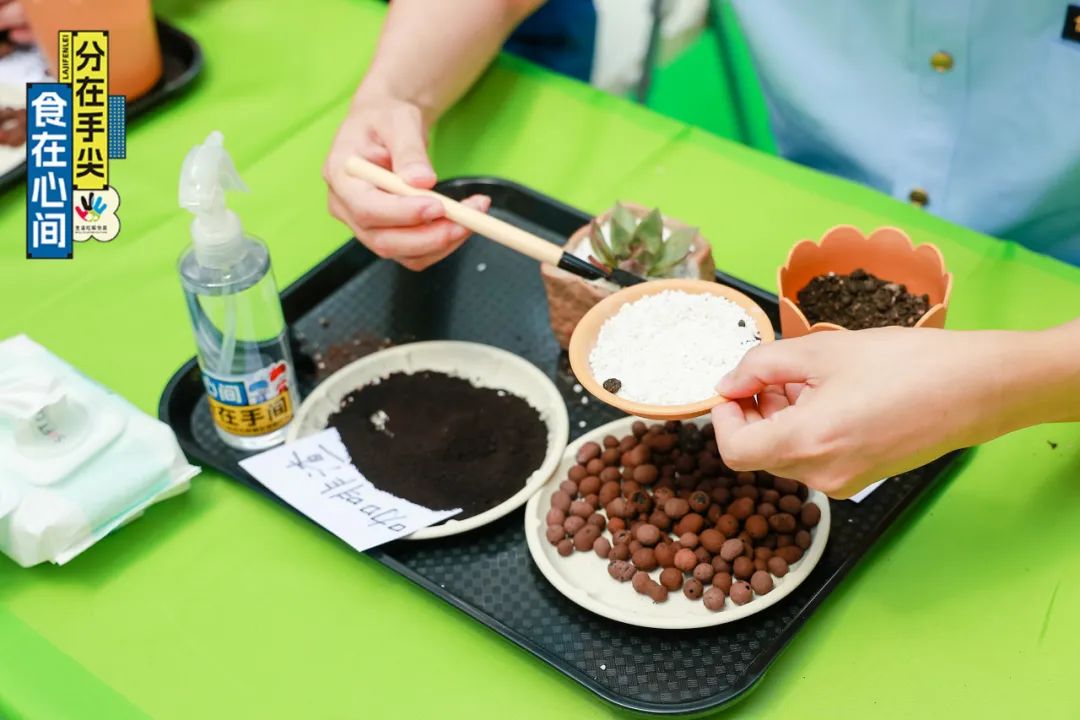 整個主題活動分為主題宣傳攤位區(qū)、堆肥知識展示區(qū)、咖啡渣香囊體驗區(qū)、環(huán)保酵素制作體驗課程、咖啡渣繪畫藝術(shù)課程。隨著以咖啡渣作為養(yǎng)料的混合土壤放入花盆中,完成充“植”儀式,活動正式拉開帷幕。