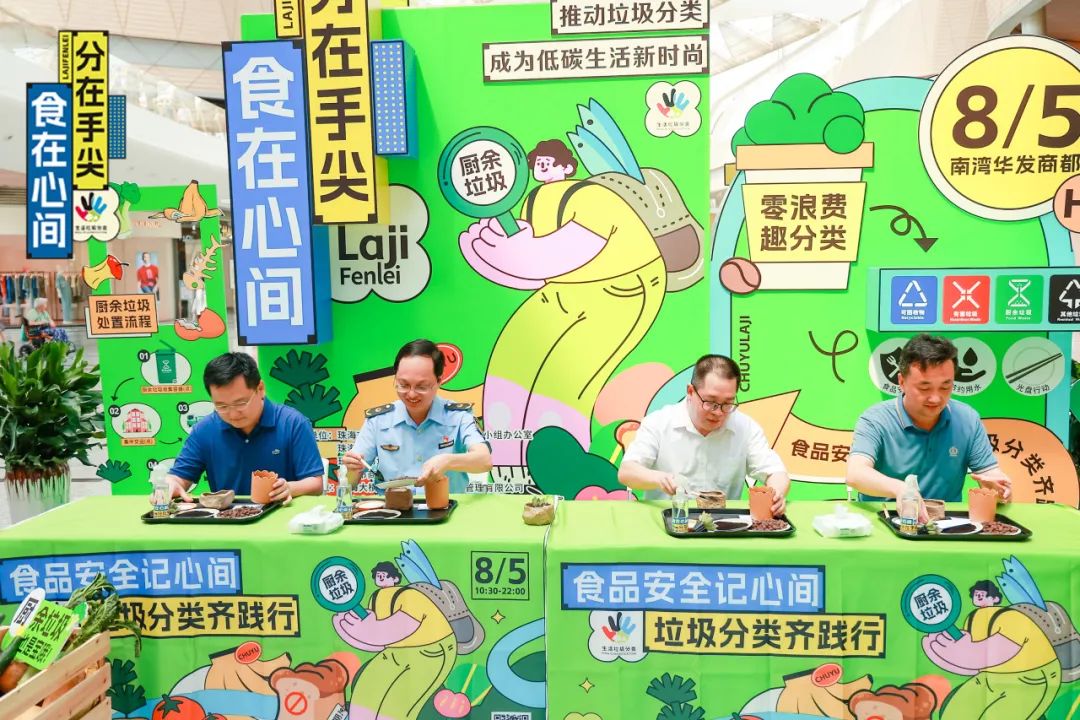 為進(jìn)一步發(fā)揮黨員引領(lǐng)垃圾分類工作的先鋒模范作用,引導(dǎo)市民關(guān)注食品安全的同時,積極做好生活垃圾分類,減少食物浪費,踐行源頭減量,2023年8月5日,由珠海市城鄉(xiāng)生活垃圾分類工作領(lǐng)導(dǎo)小組辦公室、珠海市城市管理和綜合執(zhí)法局、珠海市市場監(jiān)督管理局、珠海市商務(wù)局聯(lián)合主辦,珠海大橫琴城市公共資源經(jīng)營管理有限公司承辦的主題為“食品安全記心間,垃圾分類齊踐行,黨建引領(lǐng)新時尚”垃圾分類主題宣傳活動,于南灣華發(fā)商都B館中庭開展。