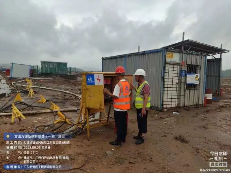 在斗門(mén)大橫琴5.0產(chǎn)業(yè)新空間萬(wàn)鋰新材料(一期)項(xiàng)目現(xiàn)場(chǎng),開(kāi)展了臺(tái)風(fēng)后復(fù)工復(fù)產(chǎn)安全大檢查,現(xiàn)場(chǎng)組織排水、圍擋修復(fù)各項(xiàng)工作。