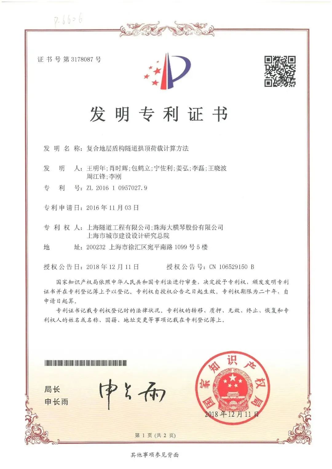 橫琴隧道在經(jīng)過評審委員會評審,指導(dǎo)委員會審定以及網(wǎng)站公示等程序,以優(yōu)異的科技成果和工程質(zhì)量脫穎而出。本次殊榮的獲得是建筑行業(yè)系統(tǒng)對該項(xiàng)目多年來取得的科技成果以及工程質(zhì)量的重要肯定。目前已形成科技成果29項(xiàng),其中發(fā)明專利8項(xiàng),國家實(shí)用新型專利18項(xiàng),科技論文17篇,軟件著作2項(xiàng)。