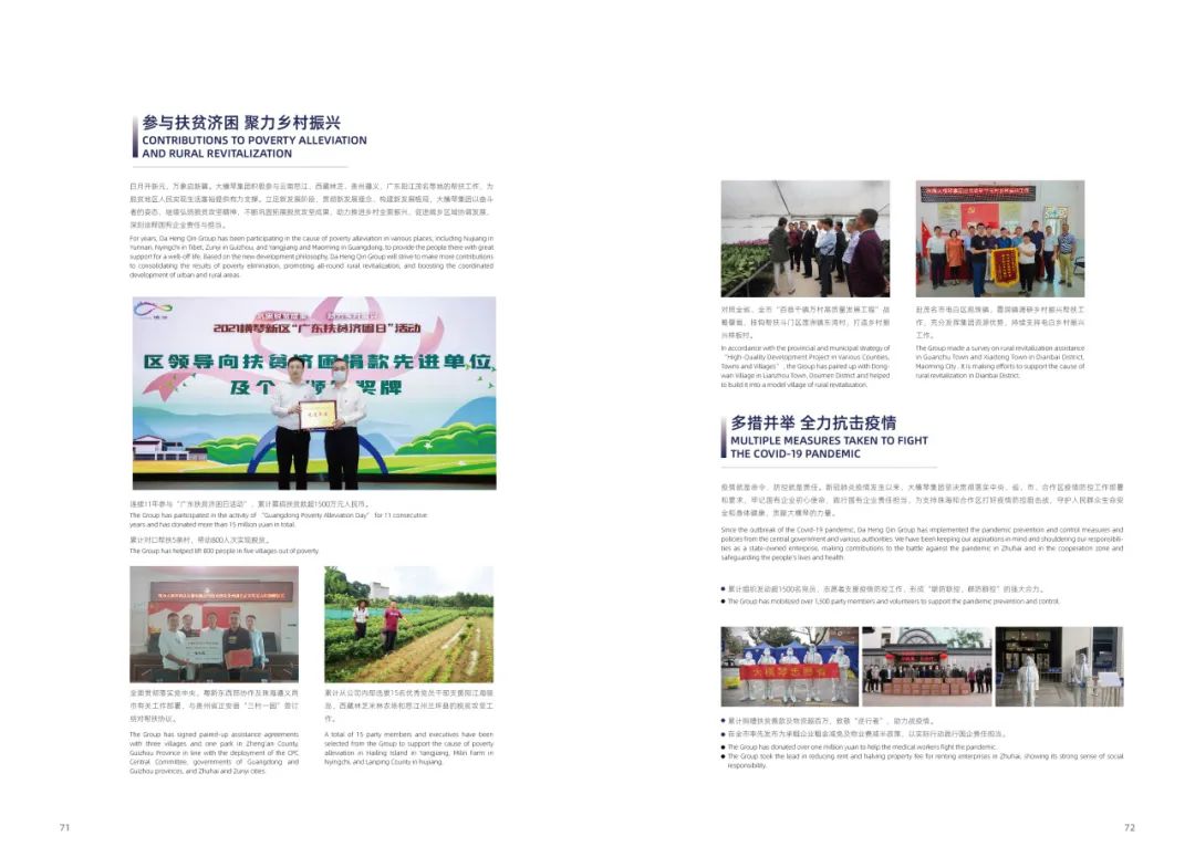 積極參與云南怒江、西藏林芝、貴州遵義、廣東陽江茂名等地的幫扶工作,助力推進(jìn)鄉(xiāng)村全面振興;在疫情防控的特殊時期,舉全集團(tuán)之力支持珠海和合作區(qū)打好疫情防控阻擊戰(zhàn);主動投身社會民生事業(yè),開展公益活動,為珠海建設(shè)民生幸福樣板城市貢獻(xiàn)力量……