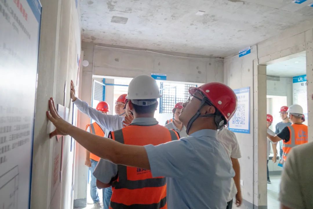 現(xiàn)場實(shí)地觀摩過程中,參會人員通過了解項(xiàng)目的總體概況、重難點(diǎn)分析、項(xiàng)目整體的工藝流程等,更深入了解了項(xiàng)目施工質(zhì)量技術(shù)。