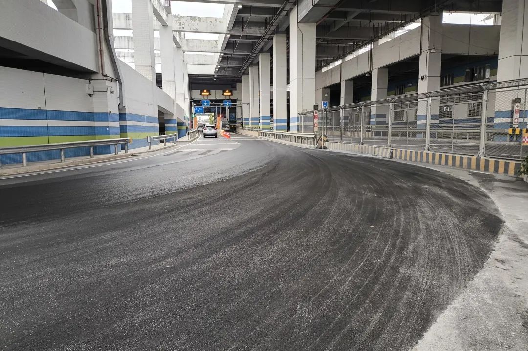 對深井通道“二線”通道內(nèi)有局部破損、高差的道路進行維修,共計維修瀝青路面990㎡,有效提高了該段道路行車的安全性和舒適性。此外,通過改造交通信號燈、拓寬車道、將綠化帶改造為瀝青路面等多種方式,進一步優(yōu)化交通組織,保障道路交通秩序環(huán)境安全有序。