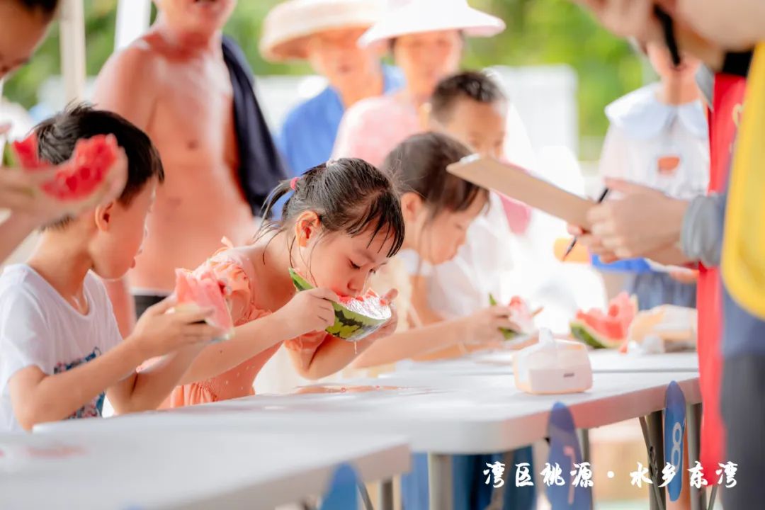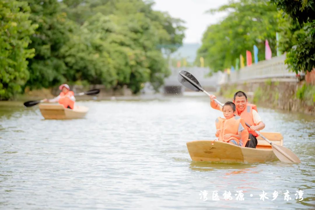 隨后,現(xiàn)場(chǎng)的水車伴著歡笑聲噴灑出陣陣水霧,也標(biāo)志著此次“東灣夏日清涼大作戰(zhàn)”活動(dòng)正式開始。在接下來的兩天時(shí)間里,活動(dòng)將充分結(jié)合東灣村民俗文化和稻田、河涌等良好的生態(tài)環(huán)境基底,通過農(nóng)艇競(jìng)渡、趣味戲水、非遺剪影、東灣美食、清涼集市等元素,將傳統(tǒng)鄉(xiāng)村元素與現(xiàn)代競(jìng)技、活動(dòng)相融合,打造一系列清涼刺激的互動(dòng)體驗(yàn)。活動(dòng)形式豐富多樣,既有團(tuán)隊(duì)合作的競(jìng)技項(xiàng)目,也有輕松愉快的趣味游戲,還有特色清涼集市供游客休閑購物,可謂是“面面俱到”。