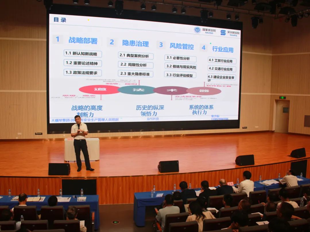 本次培訓(xùn)班為期一天,培訓(xùn)對象包括集團(tuán)本部業(yè)務(wù)骨干,各下屬企業(yè)安全總監(jiān)、安全生產(chǎn)和生產(chǎn)經(jīng)營(工程)部門負(fù)責(zé)人及業(yè)務(wù)骨干等170余人。培訓(xùn)方式為外部專家講課,培訓(xùn)緊緊圍繞“拓展管理思路、提高管理質(zhì)效”的主題,重點(diǎn)剖析安全風(fēng)險分級管控和隱患排查治理雙重預(yù)防機(jī)制,進(jìn)一步探討企業(yè)落實(shí)安全生產(chǎn)主體責(zé)任的對策建議。
