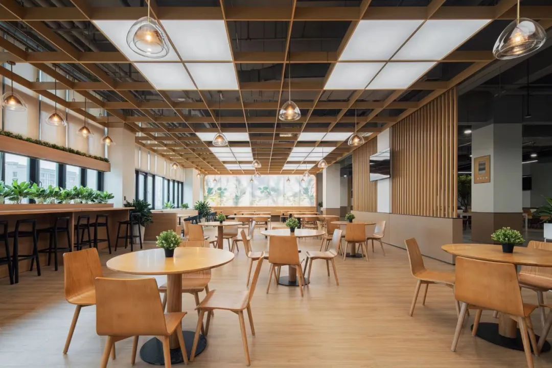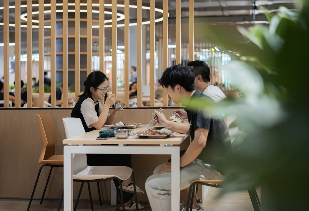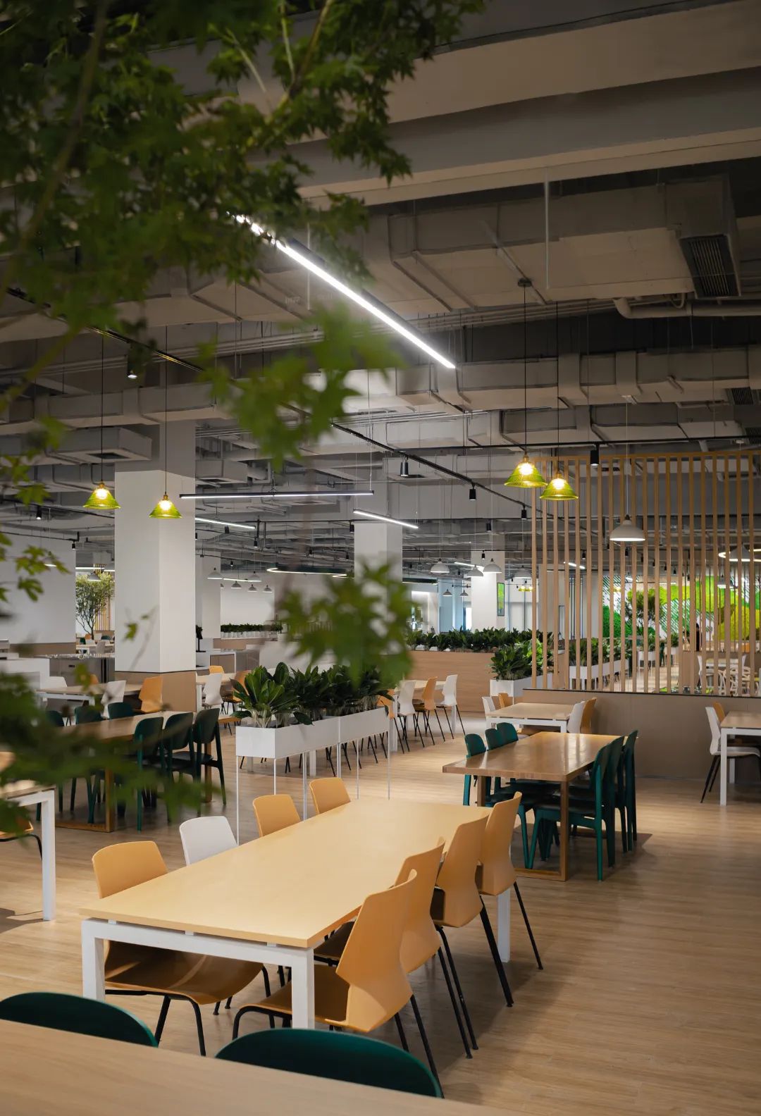 食堂在設(shè)計時,就充分考慮這還是一個社交空間,空間上分割成滿足不同社交需求的空間,靈動多元。