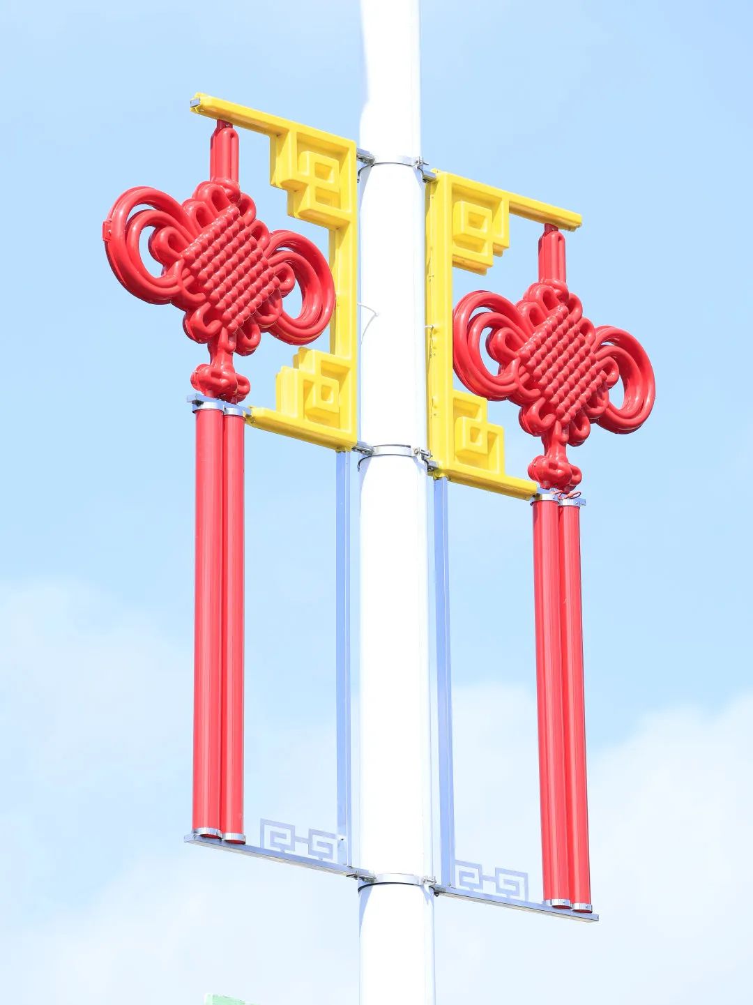 作業(yè)人員在各主干道懸掛中國(guó)結(jié)