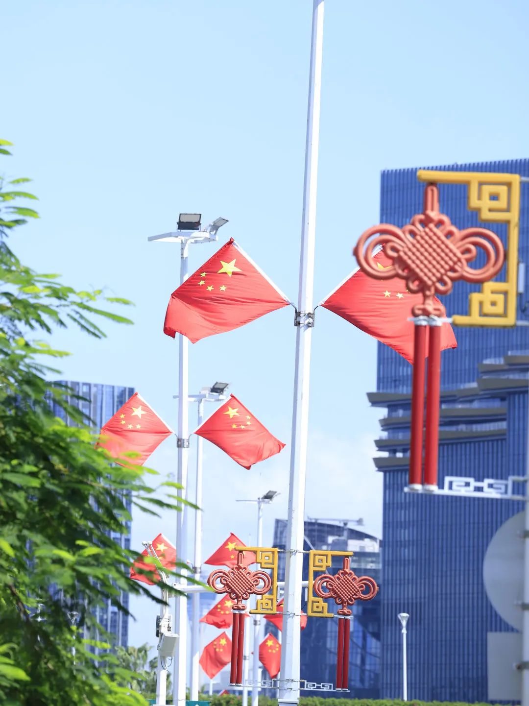 隨著國(guó)慶的腳步漸近,橫琴粵澳深度合作區(qū)(以下簡(jiǎn)稱合作區(qū))處處洋溢著喜慶歡快的節(jié)日氛圍,高高掛起的中國(guó)結(jié),璀璨絢麗的創(chuàng)意燈飾,清新怡人的綠化美景……每一處都在訴說(shuō)著節(jié)日的喜悅,在合作區(qū)城市規(guī)劃和建設(shè)局指導(dǎo)下,珠海大橫琴城市公共資源經(jīng)營(yíng)管理有限公司(以下簡(jiǎn)稱大橫琴城資)全面開(kāi)展城市美化亮化工作,在合作區(qū)各主次干道、公園、重要節(jié)點(diǎn)等地,精心設(shè)計(jì)布置,以節(jié)日盛裝,向祖國(guó)母親深情告白。