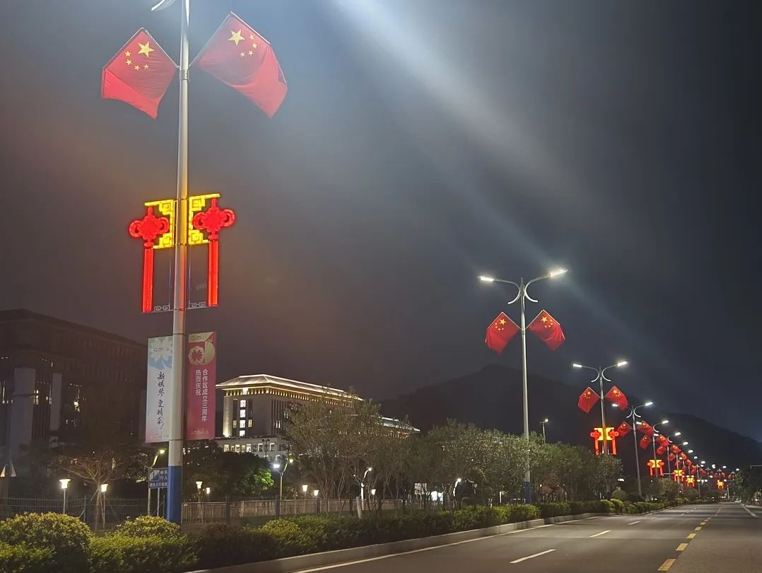 大橫琴城資在港澳大道、環(huán)島西路等重點(diǎn)路段懸掛了 230套中國(guó)結(jié),以亮麗的形象喜迎國(guó)慶。