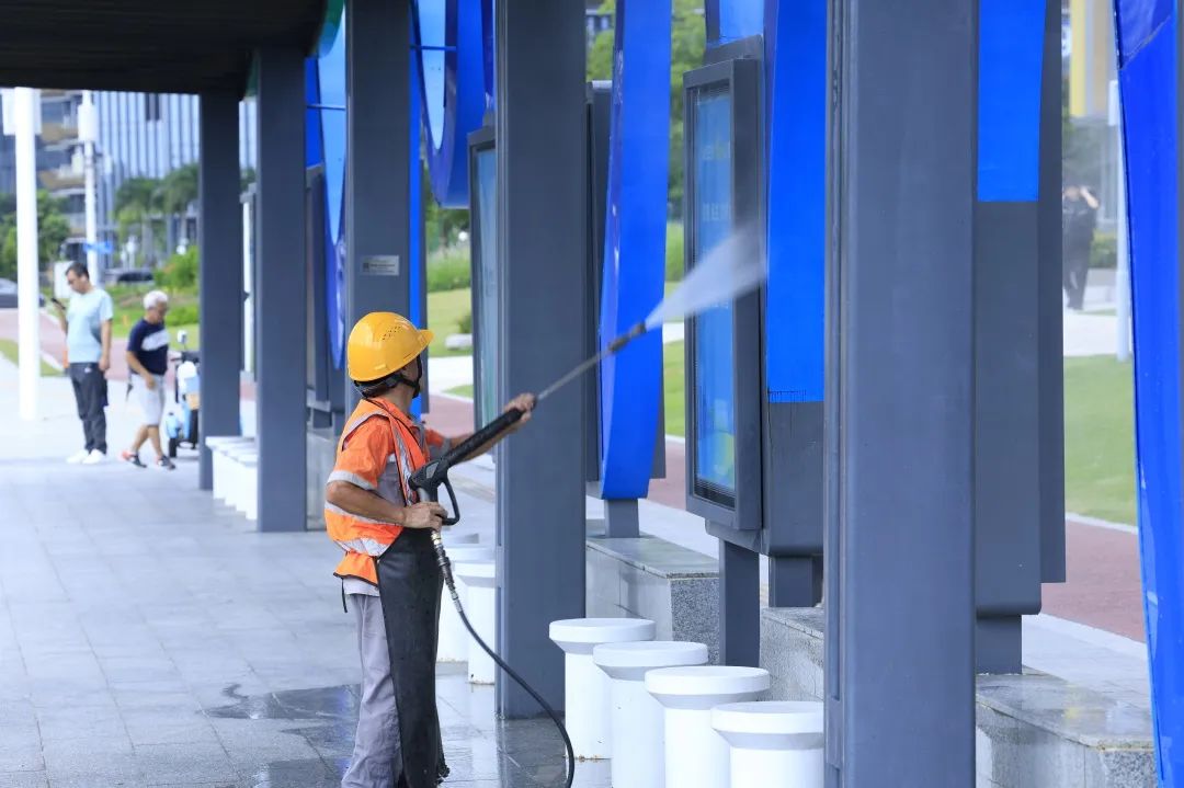 對(duì)橫琴碼頭周邊管養(yǎng)范圍內(nèi)的人行道及沿線市政設(shè)施進(jìn)行細(xì)致的清洗,進(jìn)一步提升環(huán)境整潔度,為居民和游客帶來(lái)更加舒適宜人的居住和游玩體驗(yàn)。