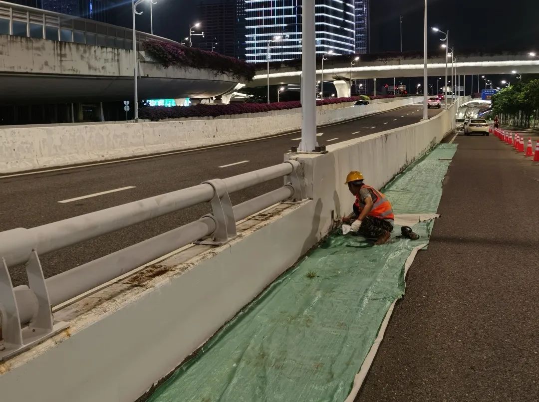 道路、橋梁作為基礎(chǔ)交通設(shè)施,也是城市景觀的重要組成部分。為打造靚麗舒適的出行環(huán)境,大橫琴城資在港澳大道立交主線橋及匝道、濠江路立交主線橋及匝道進(jìn)行防撞墻和引橋擋墻的打磨、找平、刷漆等養(yǎng)護(hù)作業(yè),施工面積達(dá)20000㎡,在美化通行環(huán)境、提升路容路貌的同時(shí),切實(shí)消除安全隱患,提升了道路通行安全系數(shù)。