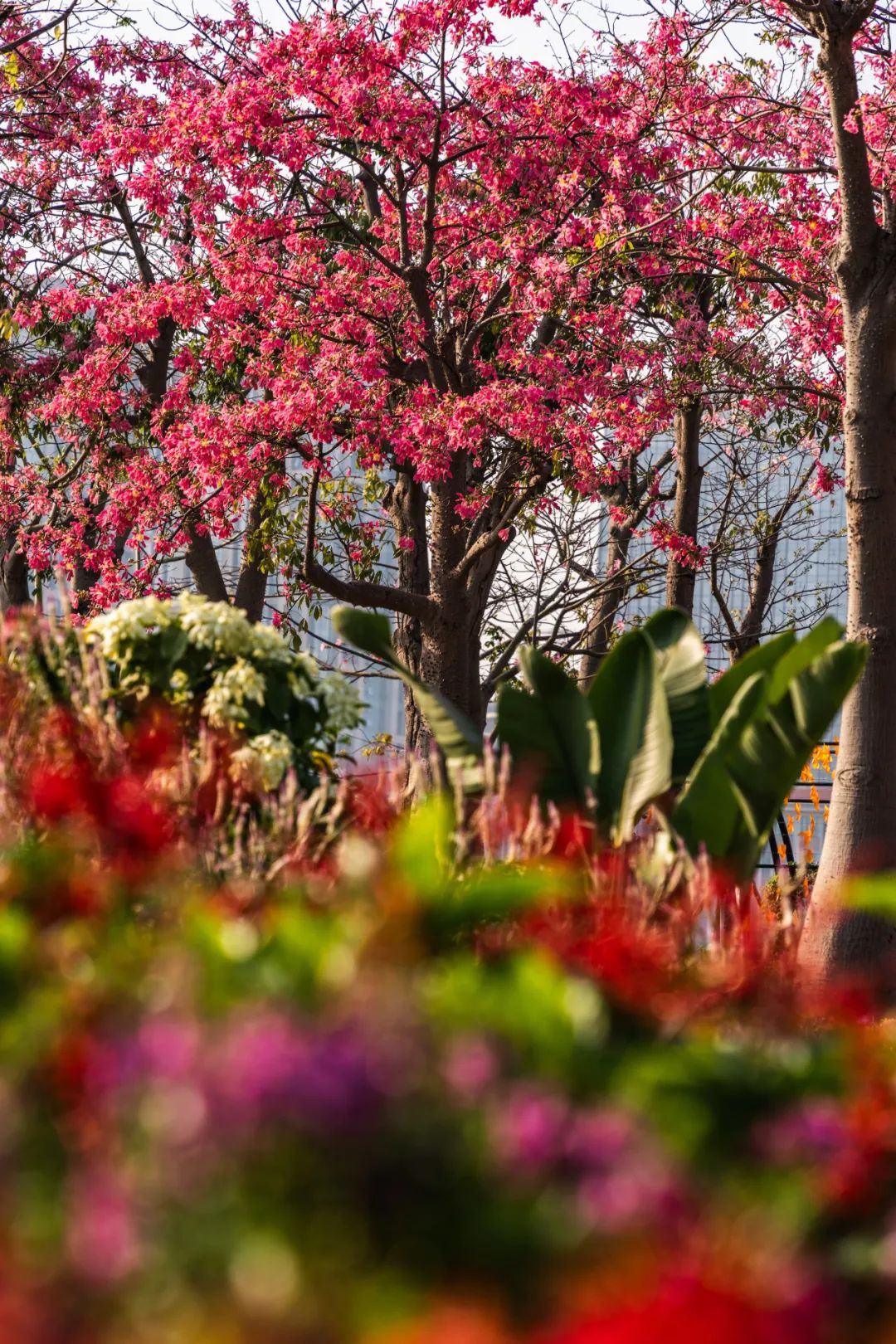 花期來(lái)臨前,大灣區(qū)一帶經(jīng)歷了較長(zhǎng)的雨季,琴建公司及時(shí)采取應(yīng)急措施,科學(xué)調(diào)整養(yǎng)護(hù)方法,充分利用雨水對(duì)花苗的滋養(yǎng),為花海的盛開(kāi)奠定了基礎(chǔ)。最終,盛放的美麗異木棉連綿不絕,乃是花海長(zhǎng)廊對(duì)琴澳居民最好的饋贈(zèng)。