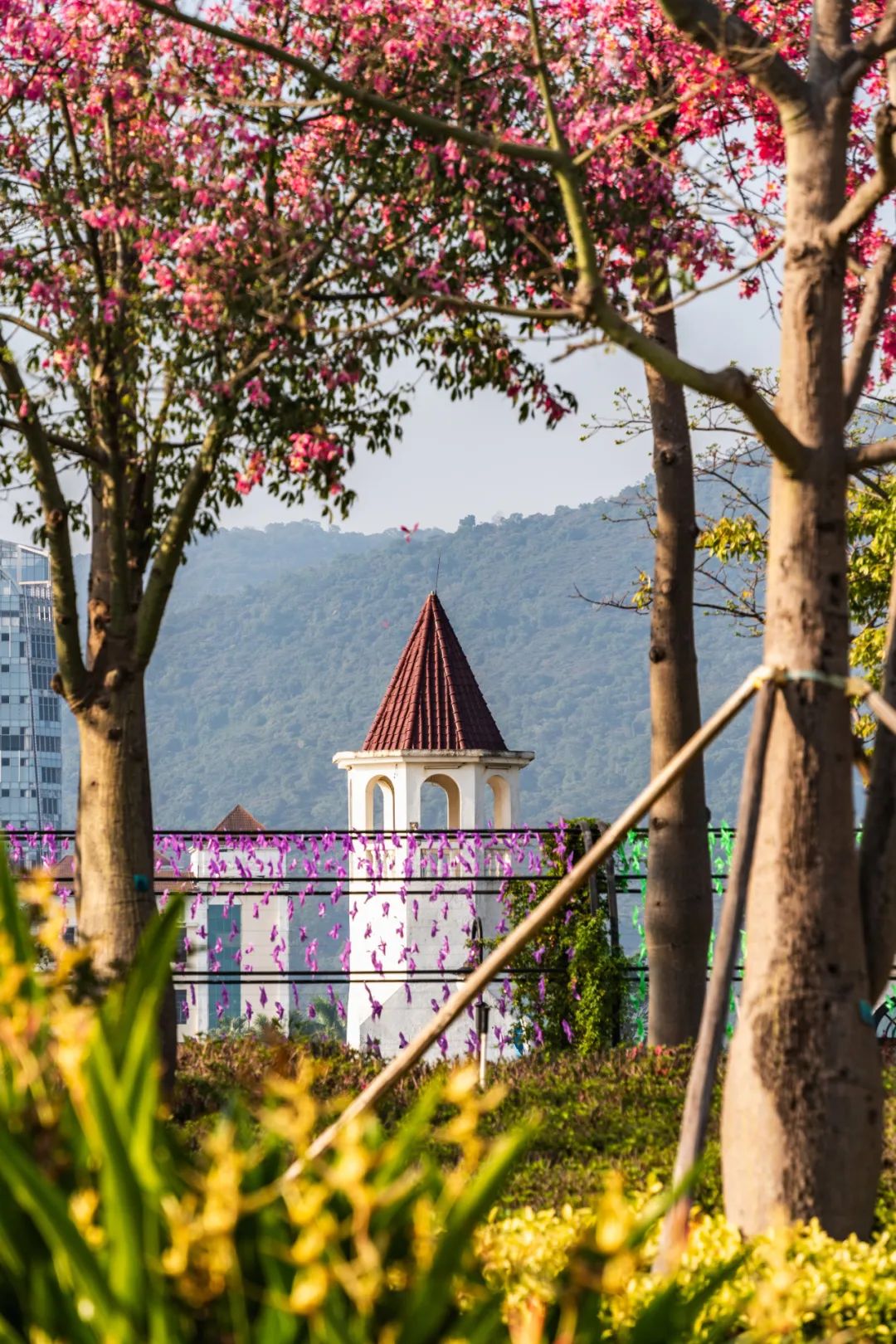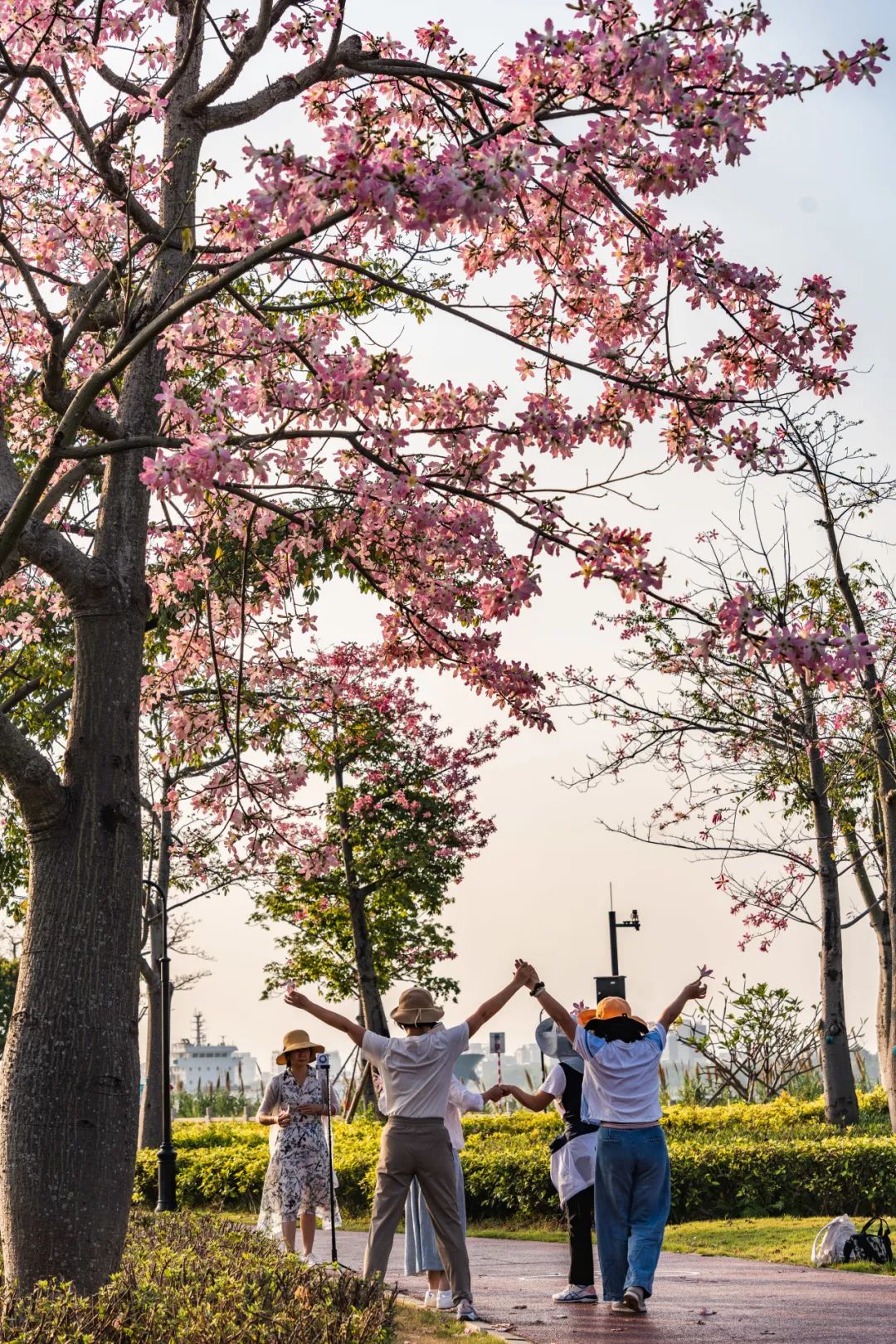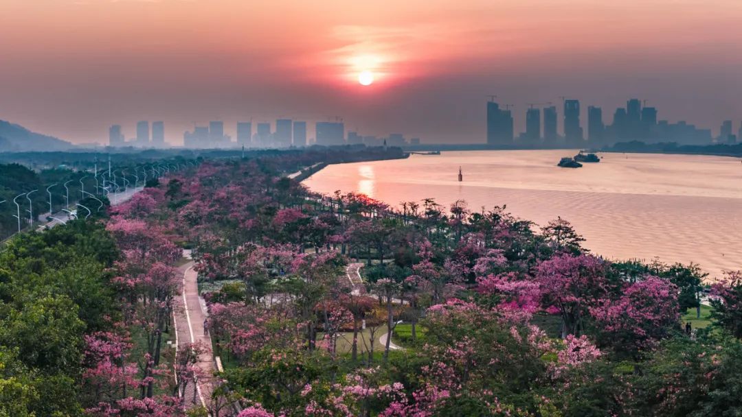 每年立冬前后,告別春夏雨季的橫琴花海長(zhǎng)廊便迎來(lái)了她一年之中最美麗的季節(jié)——美麗異木棉盛花期。絢爛的粉色花海以飽滿、茂盛、茁壯的姿態(tài)展現(xiàn)在市民游客們面前,海岸四處洋溢著浪漫與溫馨。