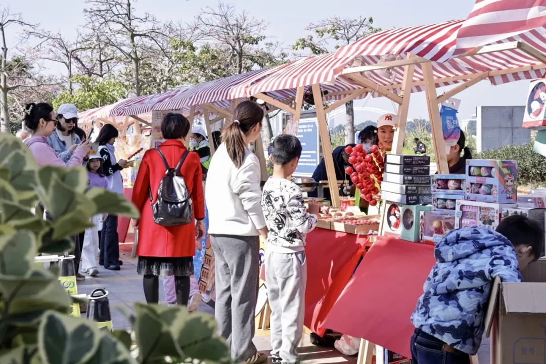 除此之外,每逢周末,一號(hào)、二號(hào)和三號(hào)驛站開(kāi)展東灣墟市活動(dòng),斗門蓮洲鎮(zhèn)東灣村農(nóng)產(chǎn)品市集走進(jìn)花海,帶來(lái)優(yōu)質(zhì)的本地產(chǎn)綠色農(nóng)產(chǎn)品、特色手工糖水和農(nóng)副產(chǎn)品、非遺點(diǎn)心小吃等,吸引了大批市民游客上前詢問(wèn)和購(gòu)買。游客在享受美景、體驗(yàn)美食之旅的同時(shí),亦促進(jìn)了鄉(xiāng)村振興與滿足城鎮(zhèn)消費(fèi)需求的良性循環(huán),鄉(xiāng)村市集在花海煥發(fā)出了新活力。