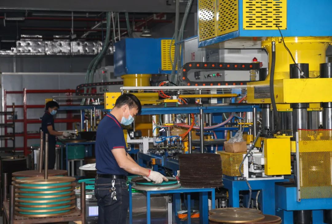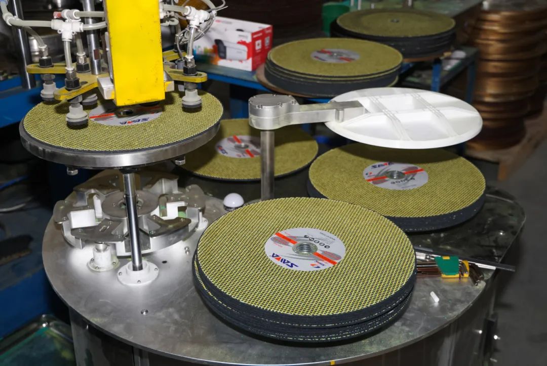步入車間,智能化設備高效運轉(zhuǎn),厚度1至6毫米的砂輪經(jīng)過精密加工后整齊排列,即將發(fā)往全球市場。