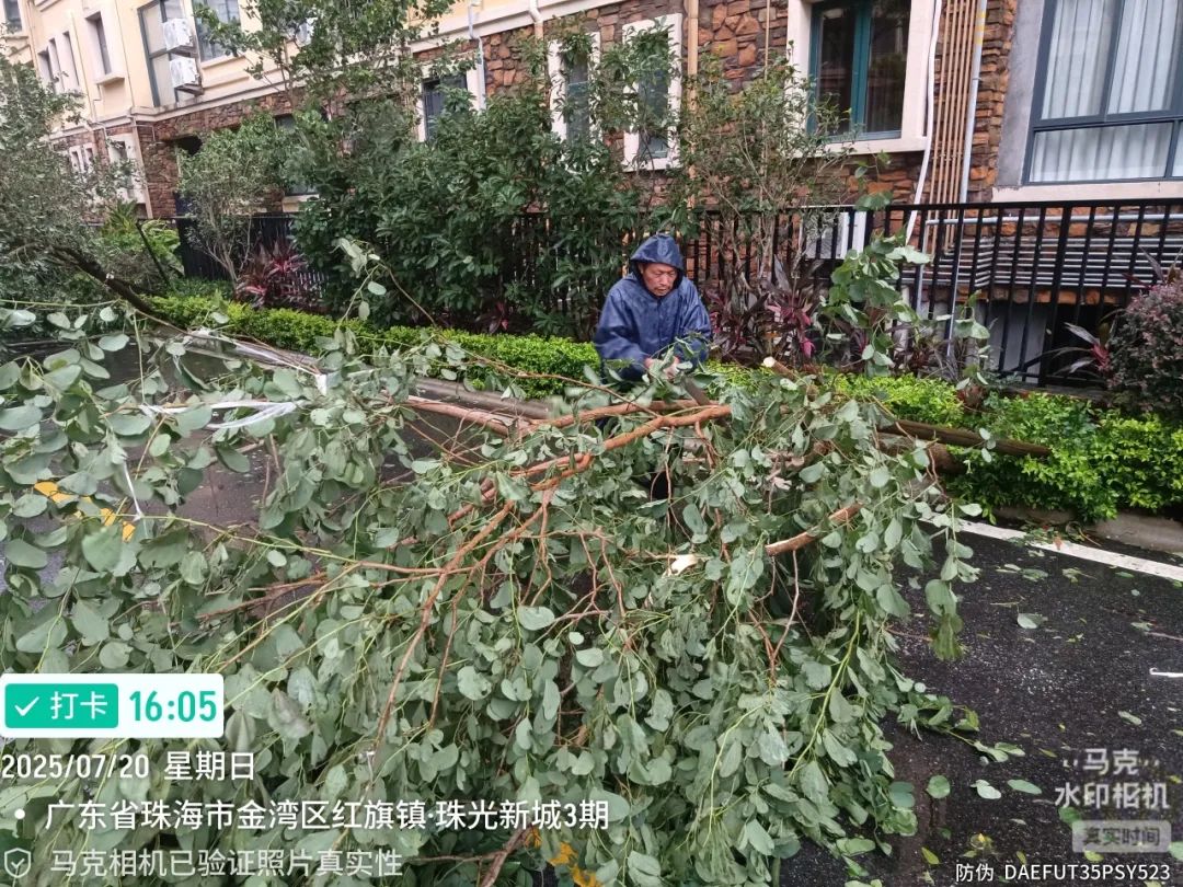 珠光物業(yè)公司迅速行動,全力以赴抓好臺風(fēng)防御各項工作,安排人員加強(qiáng)值班值守,全面開展隱患排查、加固設(shè)施、防汛排水等工作,同時通過微信等線上渠道保持與業(yè)主的緊密聯(lián)系,及時發(fā)布臺風(fēng)信息及安全防范指南。臺風(fēng)逐漸遠(yuǎn)離后,物業(yè)工作人員加緊進(jìn)行搶險修復(fù)工作,堅決守牢業(yè)主生命安全底線。