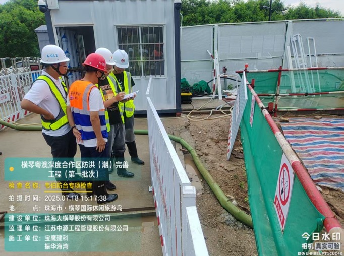大橫琴股份公司提前部署防風(fēng)專項排查,組織對橫琴環(huán)島西路二期及環(huán)島西路至長隆大道繞行大橫琴山道路工程、厚樸道擴(kuò)建工程等17個在建項目開展全覆蓋檢查。重點排查起重設(shè)備、攪拌樁機(jī)械等大型設(shè)備的加固情況,以及深基坑、工地圍擋、臨時工棚、施工臨時用電等項目的防護(hù)措施。累計發(fā)現(xiàn)隱患問題20余項,已于7月19日17時前全部完成整改。